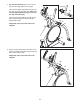 7. See the inset drawing. Slide an Inner Cover (68) onto the Right Upper Body Leg (60). 7 Next, slide the Right Upper Body Leg (60) onto the right end of the Pivot Axle (35); make sure that the Right Upper Body Leg is in front of the right Crank Arm (20). Attach the Right Upper Body Leg (60) with an M8 x 19mm Patch Screw (82) and an M8 x 25mm Washer (98). Opening Repeat this step on the other side of the elliptical. 68 35 4 60 60 98 82 20 8.