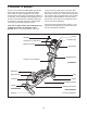 HOE DE ELLIPTISCHE TRAINER TE GEBRUIKEN HOE DE ELLIPTISCHE TRAINER OP EN UIT TE KLAPPEN HOE DE ELLIPTISCHE TRAINER TE VERPLAATSEN Als de elliptische trainer niet wordt gebruikt, kan het Onderstel worden opgeklapt. Trek eerst aan de vergrendelingshendeltjes onder elk pedaalbeen en verwijder de pedaalbenen van de hulzen van de crankarmen. Crankarm Hulz Om de elliptische trainer te verplaatsen, klap hem eerst op zoals hier links werd beschreven. Ga dan voor de elliptische trainer staan.