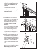 6. Leg de loopband voorzichtig op zijn rechterkant met de hulp van een tweede persoon. Vouw het Onderstel (53) gedeeltelijk zodat de loopband stabieler is; vouw het Onderstel nog niet volledig in. 6 B A Verwijder de twee aangegeven bouten (A) en de verzendbeugel (B) en gooi deze weg. 53 Bevestig een Wiel (90) met de 3/8" x 2" Bout (3) en de 3/8" Borgmoer (11) die u hebt verwijderd in stap 1. Draai de moer niet te vast; het Wiel moet vrij kunnen draaien. 90 11 7.