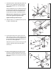 7. Lubricate the M10 x 180mm Bolt (28). Attach the Backrest (12) to the Bench Frame (5) with the Bolt, two M10 Washers (6), and an M10 Nylon Locknut (11). 7 12 27 Secure the Backrest (12) to the Bench Frame (5) by inserting the Locking Pin (27) through one of the three sets of holes in the adjustment tubes and the tube (not shown) on the Bench Frame. 28 6 Make sure the Locking Pin (27) is completely inserted through both adjustment tubes. 5 6 Adjustment 11 Tubes Tighten the Bolts (9) used in step 6.