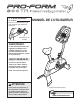 AVANT DE COMMENCER clientèle au numéro suivant (33) 01 30 86 56 81 du lundi au jeudi de 9h00 à 13h00 et de 14h00 à 18h00 et le vendredi de 14h00 à 17h00 (à l’exception des jours fériés). Le numéro du modèle est le PFEVEX69831. Le numéro de série est inscrit sur l’autocollant qui est apposé sur le vélo d'exercice (l’emplacement de l'autocollant est indiqué sur le schéma en première page). Félicitations pour avoir choisi le nouveau vélo d'exercice PROFORM® 800TR.
