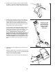 5. Référez-vous à l’étape 6. Retirez les trois Vis de M4 x 12mm (41) indiquées et les Revêtements du Guidon Gauche et Droit (6,5) de la Console (4). 5 Pendant qu'une deuxième personne tient la Console (4) dans la position illustrée, branchez le groupement de fils sur la Console sur le Groupement de Fils Supérieur (42). Insérez l’excès du groupement de fils dans le Montant (2). 42 41 Attachez la Console (4) sur le Montant (2) à l'aide de quatre Vis en Bouton de M4 x 12mm (41).