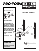 Part ListÑModel No. PFBE19000 Key No. Qty. 1 2 3 4 5 6 7 8 9 10 11 12 13 14 15 16 17 18 19 20 21 22 2 1 1 3 1 6 1 1 1 4 10 1 1 1 1 2 1 2 2 4 2 6 Description Upright Crossbar Front Leg Foot Plate Bench Frame M10 Washer Leg Lever Curl Frame Curl Pad 25mm x 25mm Inner Cap M10 Nylon Locknut Backrest Logo Plate Left Backrest Frame Right Backrest Frame 25mm x 50mm Inner Cap Seat 76mm Round Inner Cap Weight Rest Weight Rest Insert Large Adjustment Knob Leg Pad R1000B Key No. Qty.