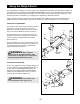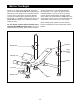 ADJUSTING THE WEIGHT RESTS To adjust the Weight Rests (19), unscrew the Large Adjustment Knob (21) counterclockwise, and pull it out of the Weight Rest, allowing the Weight Rest to slide up or down the Upright (1) to the desired position. Reinsert the Large Adjustment Knob, so that it locks it into a hole in the Upright and screw it clockwise until tight. 1 19 21 WARNING: Always set both Weight Rests (19) at the same height.