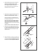 7. Lubricate the M10 x 180mm Bolt (28). Attach the Backrest (12) to the Bench Frame (5) with the Bolt, two M10 Washers (6), and a M10 Nylon Locknut (11). 7 12 27 Secure the Backrest (12) to the Bench Frame (5) by inserting the Locking Pin (27) through one of the three sets of holes in the adjustment tubes and the tube (not shown) on the Bench Frame. 28 6 Make sure the Locking Pin (27) is completely inserted through both adjustment tubes.