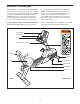8. Push down the seat lever (not shown) on the right side of the Seat Carriage Assembly (10), slide the Seat Carriage Assembly into the Frame Rail (52), and then pull the seat lever back up. 8 56 51 Attach a Bumper (51) to the Frame Rail (52) with an M4 x 20mm Screw (56). Next, press the Frame Rail Endcap (50) into the end of the Frame Rail. 52 Seat Lever 10 50 9. The Console (4) requires four 1.5V “D” batteries (not included); alkaline batteries are recommended.