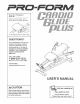 ModelNo.PFCG2224.0 SerialNo. WritetheseriaU numberinthe spaceaboveforfuturereference. SeriaU NumberDecaU (UnderSeat) Asa manufacturer, wearecommittedto providingcomplete customersatisfaction,if you have questions, or if a part is damaged or missing, PLEASE CONTACT OUR CUSTOMER SERVICE DEPARTMENT DIRECTLY. CALL TOLL-FREE: 1o888o533o1333 Mon.=Fri., ¢ a.m.=6 p.m. MST ON THE WEB: www.proformservice.com Read aH precautions and instructions in this manua_ before using this equipment.