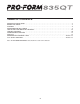 BEFORE YOU BEGIN Thank you for selecting the revolutionary PROFORM® 835QT treadmill. The 835QT treadmill combines advanced technology with innovative design to help you get the most from your exercise program in the convenience and privacy of your home. And when you’re not exercising, the unique 835QT can be folded up, requiring less than half the floor space of other treadmills. Monday through Saturday, 7 a.m. until 7 p.m. Central Time (excluding holidays).