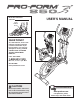 Model No. PFEL5105.1 Serial No. Serial Number Decal USER’S MANUAL QUESTIONS? As a manufacturer, we are committed to providing complete customer satisfaction. If you have questions, or if parts are damaged or missing, PLEASE CONTACT OUR CUSTOMER SERVICE DEPARTMENT DIRECTLY. CALL TOLL-FREE: 1-888-533-1333 Mon.–Fri., 6 a.m.–6 p.m. MST ON THE WEB: www.proformservice.com CAUTION Read all precautions and instructions in this manual before using this equipment. Keep this manual for future reference.