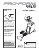 BEFORE YOU BEGIN Thank you for selecting the revolutionary PROFORM® 850 elliptical exerciser. The 850 elliptical exerciser provides an impressive array of features designed to make your workouts at home more effective and enjoyable. tacting us. The model number and the location of the serial number decal are shown on the front cover of this manual. To avoid a registration fee for any service needed under warranty, you must register the elliptical exerciser at www.proformservice.com/registration.