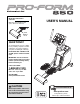 BEFORE YOU BEGIN Thank you for selecting the revolutionary PROFORM® 850 elliptical exerciser. The 850 elliptical exerciser provides an impressive array of features designed to make your workouts at home more effective and enjoyable. tacting us. The model number and the location of the serial number decal are shown on the front cover of this manual. To avoid a registration fee for any service needed under warranty, you must register the elliptical exerciser at www.proformservice.com/registration.