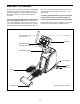 . While a second person tips the elliptical exerciser forward, attach the Rear Ramp Cover (17) to the Ramp (2) with four #8 x 2" Screws (68). 11 17 2 68 68 12. Make sure that all parts of the elliptical exerciser are properly tightened. Note: Some hardware may be left over after assembly is completed. To protect the floor or carpet from damage, place a mat under the elliptical exerciser.