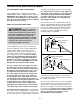HOW TO LOWER THE TREADMILL FOR USE 1 1. Hold the upper end of the treadmill with your right hand as shown. Using your left hand, pull the latch knob to the left and hold it. Pivot the treadmill down until the frame is past the pin. Slowly release the latch knob. Latch Knob Pin Catch 2. Hold the treadmill firmly with both hands, and lower the treadmill to the floor. Do not drop the treadmill frame to the floor. CAUTION: To decrease the possibility of injury, bend your legs and keep your back straight.