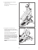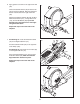 14..Attach the lower end of the Console (33) to the Upright (5) with two M4 x 19mm Screws (156). See step 12 on page 12. Tighten the M4 x 19mm Screws (156) in the upper end of the Console (33 14 33 156 15. Orient the Front Upright Cover (24) as shown. Attach the Front Upright Cover (24) around the Upright (5) by pressing the tabs on the Front Upright Cover into the Rear Upright Cover (25). 15 24 25 5 16. Make sure that all parts of the elliptical are properly tightened.
