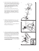 4. Turn the Seat Knob (3) counterclockwise several turns to loosen it. Next, pull back the Seat Knob and insert the Seat Post (9) into the Frame (13). Slide the Seat Post to the desired height and release the Seat Knob. Move the Seat Post up or down slightly until it locks into place. Turn the Seat Knob clockwise to tighten it. 4 8 Press the Seat Collar (10) into the Frame (13). 59 59 56 Next, attach the Seat (8) to the Seat Post (9) with the three M8 Nylon Locknuts (56) and M8 Lock Washers (59).