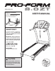www.proform.com Model No. PFTL60909.0 Serial No. Write the serial number in the space above for reference. Serial Number Decal QUESTIONS? If you have questions, or if parts are damaged or missing, DO NOT CONTACT THE STORE; please contact Customer Care. IMPORTANT: Please register this product (see the limited warranty on the back cover of this manual) before contacting Customer Care. 1-888-533-1333 CALL TOLL-FREE: Mon.–Fri. 6 a.m.–6 p.m. MT Sat. 8 a.m.–4 p.m. MT ON THE WEB: www.proformservice.