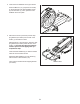 20. Orient the Front Upright Cover (91) as shown. 20 123 Press the Front Upright Cover (91) into the Rear Upright Cover (80). 91 Attach the Front Upright Cover (91) to the Upright (4) with a #8 x 3/4" Screw (123). 4 80 21. Make sure that all parts are properly tightened before you use the elliptical. Note: After assembly is completed, some extra parts may be left over. Place a mat beneath the elliptical to protect the floor.