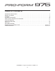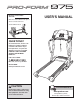 BEFORE YOU BEGIN number and serial number before contacting us. The model number of the treadmill is PFTL91206.0. The serial number can be found on a decal attached to the treadmill (see the front cover of this manual for the location). Thank you for selecting the revolutionary PROFORM® 975 treadmill. The 975 treadmill offers an impressive array of features designed to make your workouts at home more enjoyable and effective.