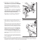 2. Remove the screws and the wood brace from the Uprights (109). Discard the screws and the brace. 2 122 Identify the left handrail, which has a hole in the indicated location, and the right handrail. Hold the right handrail near the right Upright (109), and insert the Wire Harness (83) into the large hole in the right handrail and out of the upper end as shown. Brace Left Handrail 109 Hole Right Handrail 112 Attach the left handrail as described above.