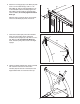 1. Make sure that the power cord is unplugged. 1 With the help of a second person, carefully tip the treadmill onto its left side. Partially fold the Frame (51) so that the treadmill is more stable; do not fully fold the Frame yet. Attach two Base Feet (87) to the Base (90) in the locations shown with two #8 x 1" Tek Screws (2) and two Base Foot Spacers (88). Then, attach two Base Feet (87) with only two #8 x 1" Tek Screws (2). 90 87 51 88 2 87 2 87 88 2.