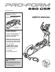 www.proform.com Model No. PFEL89909.0 Serial No. Write the serial number in the space above for reference. Serial Number Decal QUESTIONS? If you have questions, or if parts are damaged or missing, DO NOT CONTACT THE STORE; please contact Customer Care. IMPORTANT: Please register this product (see the limited warranty on the back cover of this manual) before contacting Customer Care. 1-888-533-1333 CALL TOLL-FREE: Mon.–Fri., 6 a.m.–6 p.m. MT Sat. 8 a.m.–4 p.m. MT ON THE WEB: www.proformservice.