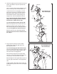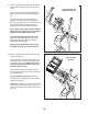 HOW TO MOVE THE ELLIPTICAL HOW TO EXERCISE ON THE ELLIPTICAL To move the elliptical, first fold it as described on page 12. Next, stand in front of the elliptical, hold the upright, and place one foot against one of the wheels. Pull the upright until the elliptical rolls on the wheels. Carefully move the elliptical to the desired position, and then lower it to the floor. To mount the elliptical, hold the upper body arms and step onto the pedal that is in the lowest position.