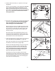 2. Attach two Base Pads (82) to the base of the Uprights (84) with two 1" Tek Screws (22) as shown. 2 84 82 82 22 3. Identify the Right Base Cover (107). Attach the Right Base Cover to the base of the Uprights (84) and the Extension Leg (89) with five Screws (3). Be careful not to overtighten the Screws. 3 84 107 With the help of a second person, carefully tip the treadmill onto its other side. Attach the left Extension Leg (not shown) as described in steps 1 through 3. 3 89 4.