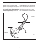 FEATURES OF THE CONSOLE HOW TO USE THE CONSOLE The console features five modes that provide instant exercise feedback during your workouts: Note: Make sure that a battery is installed (see HOW TO INSTALL A BATTERY at the left). If there is a sheet of plastic on the display, remove the plastic. Scan—Displays the Time, Calorie, and Reps/Min modes in a repeating cycle 1. Turn on the console. Press the console button or begin exercising to turn on the console. Time—Displays the elapsed time 2.