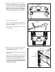 7. Pull the indicated strap until the Upright Wire (69) is extending from the upper end of the Right Upright (39). 7 69 Strap 38 39 Slide the Right and Left Base Leg Covers (42, 33) onto the Left and Right Uprights (38, 39). Starting at the front of the Base Leg Cover, press them down onto the Base (37) as shown. If necessary, pry lightly on the sides of the Base Leg Covers to fit them over the Wheel Nuts (90) and Bolts (5). 33 Front 42 37 5 90 8.