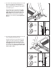 . Set the Console Base (67) onto the top of the Handrails (40). Next, start the two Console Bolts (2) with 1/4” Star Washers (8) into the Handrails and the Console Base. Do not fully tighten the Bolts yet. Start all four 3/4” Screws (3) before tightening them. Be careful not to overtighten the Screws. Tighten the two Console Bolts. 10 67 Front View 40 40 8 3 3 2 8 2 11. Lower the Uprights (38, 39). 11 Side View See the inset drawing.