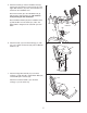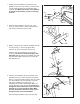 . Attach the Backrest (13) to the Seat Carriage (11) with four 1/4” x 38mm Hex Screws (78) and four M6 Washers (25). 8 11 25 78 9. Pull the seat knob and slide the Seat Carriage (11) onto the Seat Rail (7). 13 25 9 25 62 23 65 See the inset drawing. Hold the Bumper Axle (73) inside of the Seat Rail (7). Attach the two Bumpers (65) to the ends of the Bumper Axle with two M6 x 16mm Screws (62) and two M6 Washers (25) as shown. Press the Seat Rail Endcap (23) into the end of the Seat Rail.