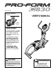 BEFORE YOU BEGIN Congratulations for selecting the new PROFORM® C 830 elliptical crosstrainer. The PROFORM® C 830 is an incredibly smooth exerciser that moves your feet in a natural elliptical path, minimizing the impact on your knees and ankles. And the unique PROFORM® C 830 features adjustable resistance and a state-of-the-art console to help you get the most from your exercise. Welcome to a whole new world of natural, ellipticalmotion exercise from PROFORM.