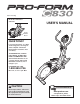 BEFORE YOU BEGIN Congratulations for selecting the new PROFORM® C 830 elliptical crosstrainer. The PROFORM® C 830 is an incredibly smooth exerciser that moves your feet in a natural elliptical path, minimizing the impact on your knees and ankles. And the unique PROFORM® C 830 features adjustable resistance and a state-of-the-art console to help you get the most from your exercise. Welcome to a whole new world of natural, ellipticalmotion exercise from PROFORM.