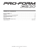 BEFORE YOU BEGIN Congratulations for selecting the new PROFORM® C830 elliptical crosstrainer. The PROFORM C830 is an incredibly smooth exerciser that moves your feet in a natural elliptical path, minimizing the impact on your knees and ankles. And the unique PROFORM C830 features adjustable resistance and a state-of-the-art console to help you get the most from your exercise. Welcome to a whole new world of natural, ellipticalmotion exercise from PROFORM.