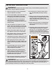 IMPORTANT PRECAUTIONS WARNING: To reduce the risk of serious injury, read the following important precautions before using the elliptical crosstrainer. 1. Read all instructions in this manual before using the elliptical crosstrainer. 12. If you feel pain or dizziness while exercising, stop immediately and begin cooling down. 2. It is the responsibility of the owner to ensure that all users of the elliptical crosstrainer are adequately informed of all precautions. 13.