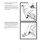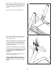 10. Set the console assembly on the Left and Right Handrails (71, 72). Make sure that no wires are pinched. Insert the excess Upright Wire (70) behind the Console Frame (87). 10 Console Assembly 87 Attach the console assembly to the brackets on the Handrails (71, 72) with the four 5/16" x 5/8" Screws (7) that you removed in step 6. Do not tighten the Screws yet. 70 72 71 7 7 11. Attach the Pulse Crossbar (31) to the console assembly with six #8 x 1/2" Screws (9).