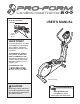 BEFORE YOU BEGIN Congratulations for selecting the new PROFORM® 800 CARDIO CROSSTRAINER. The PROFORM® 800 is an incredibly smooth exerciser that moves your feet in a natural elliptical path, minimizing the impact on your knees and ankles. And the unique PROFORM® 800 features adjustable resistance and a state-of-theart console to help you get the most from your exercise. Welcome to a whole new world of natural, elliptical-motion exercise from PROFORM.