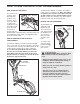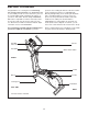 . Identify the Left Pedal (13). Attach the Left Pedal to the left Flex Bar (14) with an M10 x 33mm Carriage Bolt (20), an M10 Washer (38), and a Pedal Knob (15) as shown. Note: The Left Pedal can be attached in any of five positions (see HOW TO ADJUST THE PEDALS on page 9). 8 20 13 Attach the Right Pedal (not shown) in the same way. Make sure that both Pedals are in the same position. 14 38 15 9. Make sure that all parts of the elliptical crosstrainer are properly tightened.