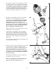 HOW TO USE THE ELLIPTICAL CROSSTRAINER HOW TO ADJUST THE PEDALS To dismount the elliptical crosstrainer, wait until the pedals come to a complete stop. Note: The elliptical crosstrainer does not have a free wheel; the pedals will continue to move until the flywheel stops. When the pedals are stationary, step off the highest pedal first. Then, step off the lowest pedal. The motion of the pedals is deterBolt Flex Bar mined by their positions on the flex bars. There are five positions.