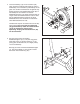 HOE DE ELLIPTISCHE TRAINER TE GEBRUIKEN Om de elliptische trainer te monteren houdt u de handleuningen vast en stapt u op het pedaal dat zich in de laagste positie bevindt. Stap vervolgens op het andere pedaal. Druk op de pedalen tot deze beginnen te bewegen in een doorlopende beweging. Opmerking: De crankarmen kunnen in beide richtingen draaien.