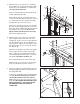 8. Insert the indicated connectors into the Right Upright (78). 8 95 Next, insert the fronts of the brackets on the Bridge (95) into the Uprights (74, 78), and then fully insert the brackets. Make sure that the plastic edges of the Bridge are inside the Uprights. Connectors Attach the Bridge (95) with six 1/4" x 1/2" Bolts (7) and six 1/4" Star Washers (10); start all six Bolts and then tighten them. 7 10 Front 7 Edge 7 See steps 4 and 6. Tighten the four 3/8" x 4 1/2" Bolts (6). 74 10 7 78 9.