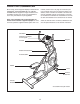 12. La Console (5) requiert quatre piles de 1,5 V « D », (non-incluses). Piles alkalines sont recommandées. IMPORTANT : si lʼapparèil elliptique a été entreposé dans un endroit froid, laissezle atteindre la température ambiante de la pièce dans laquelle vous allez lʼutiliser avant de mettre les piles dans la Console. Si vous ne suivez pas cette consigne, lʼécran de la console ou les autres composantes électroniques de lʼappareil peuvent être endommagés.
