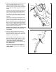 COMMENT UTILISER LʼAPPAREIL ELLIPTIQUE COMMENT DÉPLACER LʼAPPAREIL ELLIPTIQUE Étant donné la taille et le poids de lʼappareil elliptique, deux personnes sont nécessaires pour le déplacer. Placez-vous devant lʼappareil elliptique, tenez le montant puis placez un pied contre une des roues avant. Tirez le montant et demandez à lʼautre personne de soulever la base jusquʼà ce que lʼappareil elliptique soit en mesure de rouler sur les roues avant.