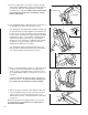5. Move your right hand to the position shown at the right, and hold the treadmill firmly. Using your left hand, lift the storage latch. Raise the treadmill until the locking pin snaps into the storage latch. Make sure that the locking pin is inside the storage latch, and that the storage latch is fully closed. 6. See drawing 6B. Attach a Base Pad (73) to the bottom of the Stabilizer Plate (88) in the indicated location. 5 Storage Latch Locking Pin 6B 6A 88 4 See drawing 6A.