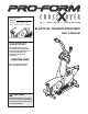 Model No. 30511.0 Serial No. Write the serial number in the space above for future reference. ELLIPTICAL TRAINER EXERCISER User’s Manual Serial Number Decal (Under Seat) QUESTIONS? As a manufacturer, we are committed to providing complete customer satisfaction. If you have questions, or if there are missing parts, please call: 1-888-936-4266 Mon.–Fri. 8h00 until 17h00 EST (excluding holidays). CAUTION Read all precautions and instructions in this manual before using this equipment.