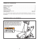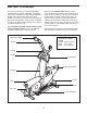 When the program begins, the word ELLIPTICAL and a time period of 3 or 4 minutes will appear in the CROSSOVER TRAINING display. Extend the seat base and begin pedaling. Continue to pedal while the time is counted down in the display. CROSSOVER TRAINING The console offers ten crossover training programs that combine elliptical exercise with strength training exercises. To use a crossover training program, follow the steps below. 1. Plug In the Transformer. See PLUGGING IN THE ELLIPTICAL TRAINER on page 14.