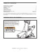 15. Attach the Seat (23) to the Seat Base (2) with four M6 x 16mm Screws (130). 15 23 130 2 130 16. Slide the two Foam Pads (64) onto the Leg Lever (4). 130 16 64 64 4 17. Adjust the Feet (48) under the Upright Stabilizer (10) to steady the elliptical trainer. 17 10 18. Make sure that all parts have been properly tightened. The use of the remaining parts will be explained in ADJUSTMENTS, beginning on the following page.