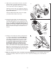 9. While another person holds the Console (16) in the position shown, connect the wire harness on the Console to the Upper Wire Harness (35). Insert the excess wire harness into the Upright (13). 9 Wire Harness 73 16 Attach the Console (16) to the Upright (13) with four M4 x 16mm Screws (73). Be careful to avoid pinching the wire harnesses. 13 35 Attach the Water Bottle Holder (89) to the Upright (13) with two M4 x 22mm Screws (91). 89 91 10.