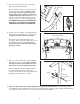 2. Attach a Wheel (66) to the base of the Uprights (69) with a Wheel Bolt (64) and a Nut (13) as shown. Do not overtighten the Wheel Bolt; the Wheel should turn freely. 2 64 66 69 13 3. With the help of a second person, carefully tip the treadmill onto its right side as shown. Partially fold the Frame (86) so the treadmill is more stable. Do not fully fold the treadmill until it is completely assembled. 3 66 Insert an Extension Leg (63) into the base of the Uprights (69).