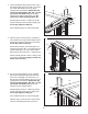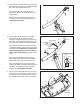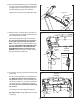 13. Identify the Storage Latch (53). Remove the tie from the end of the tube. Make sure that the sleeve has been slid over the indicated hole and that the Latch Knob (54) is locked into the hole. Pull on the sleeve to make sure that it is locked into place. 13 54 Tube 14. Raise the Frame (56) to the position shown. Have a second person hold the Frame until this step is completed. Sleeve 14 8 4 53 54 Large Barrel 14 83 Lower the Frame (56) (see HOW TO LOWER THE TREADMILL FOR USE on page 24).